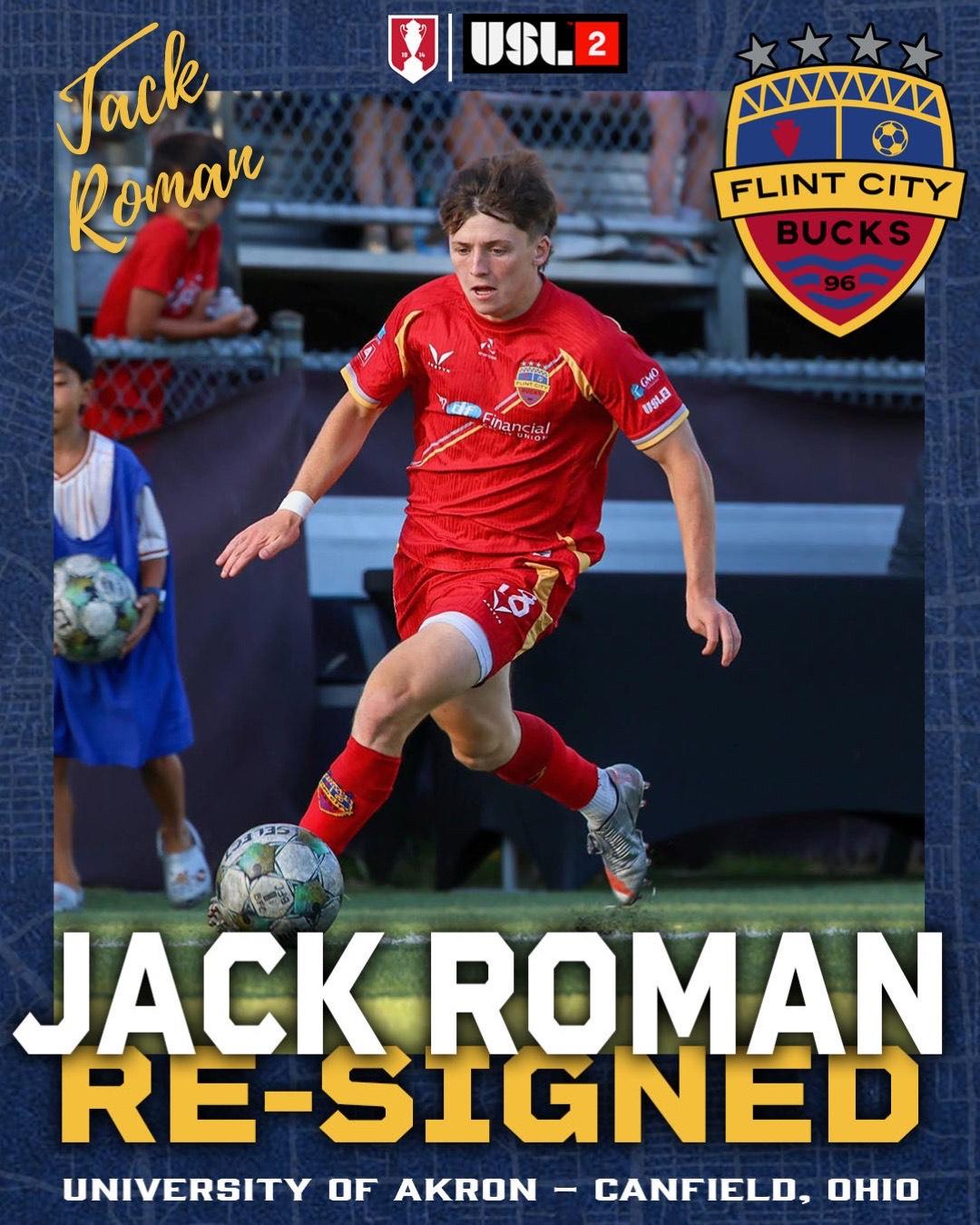 Bucks have re-signed Akron University’s Jack Roman for the upcoming USL League Two season, pending league and federation approval.
