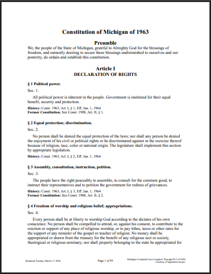 Michigan’s Constitution: Article 1 – Declaration of Rights |