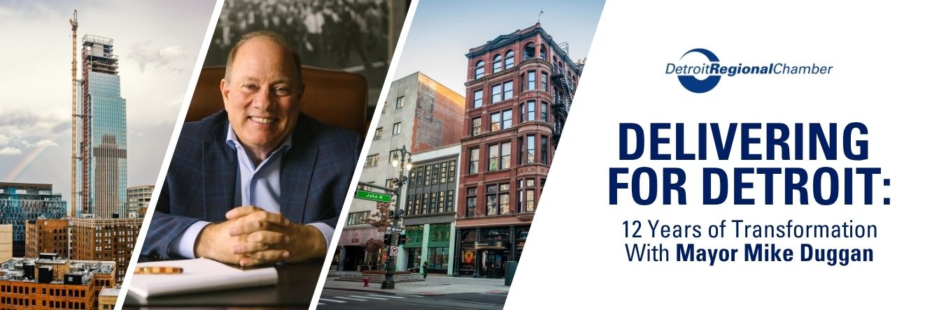 On Tuesday, Nov. 25, business leaders will join the Chamber in recognizing 12 years of Detroit Mayor Mike Duggan‘s transformative leadership and partnership. Tune in to the livestream, where Duggan will share his vision for the future of Detroit as a new mayor prepares to take the lead.