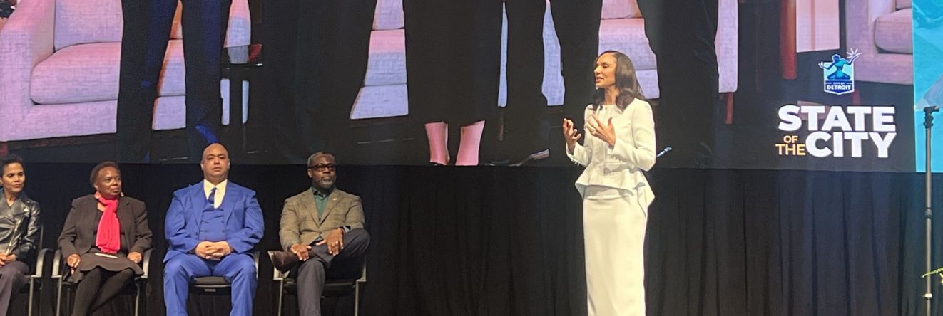 Mayor Mary Sheffield, Detroit’s 76th mayor and the first woman to hold the office, delivered her first State of the City speech at Mumford High School.