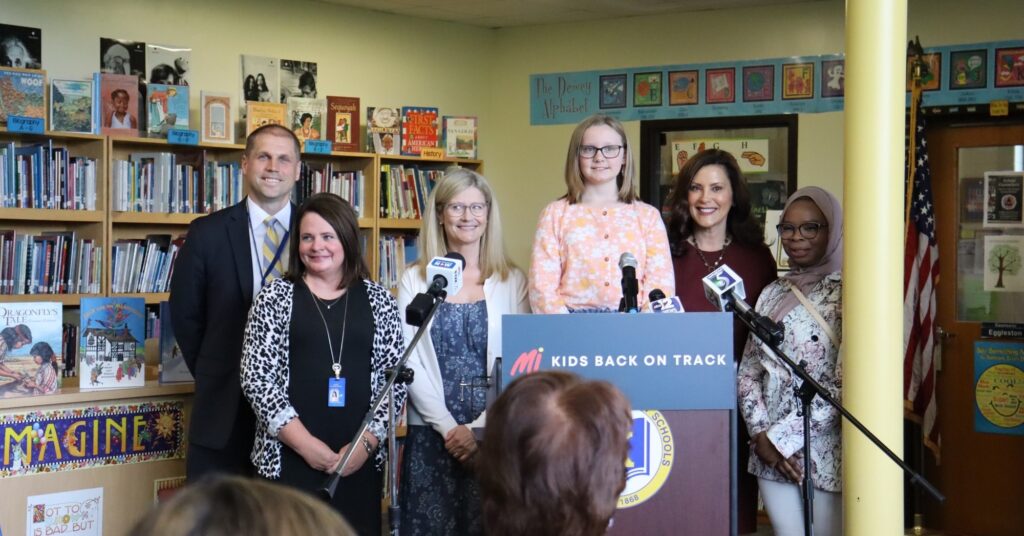 LANSING, Mich.– Monday, Governor Gretchen Whitmer introduced the MI Kids Back on Track, a plan to expand tutoring and other learning supports across the state. The proposal would invest $280 million of Michigan’s $3 billion in additional revenue to tackle unfinished learning after a tough few years with tutoring or other forms of personalized instruction before, after, or during school.