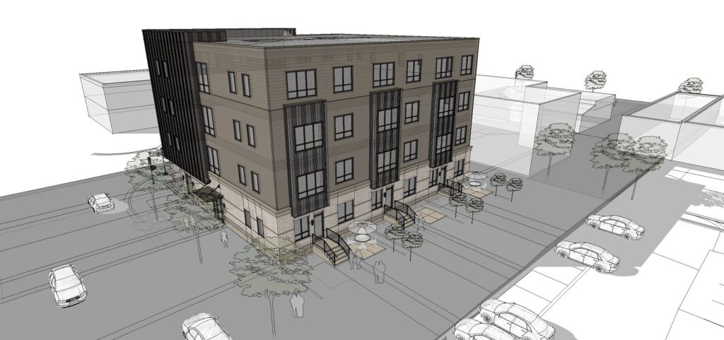 The 900 W. Leonard Redevelopment Project will include the new construction of a four-story mixed-use building on the Westside of Grand Rapids. When completed, the project will include 120 residential units, retail space on the first floor, a common area, and underground parking. Public infrastructure improvements will include road repair, sidewalks, curb and gutter work, and the installation of a public bus shelter.
