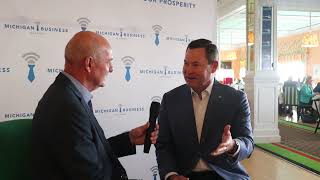 Chris Holman speaks with Matt Elliott, President, Bank of America Michigan, from Media Row, at the Grand Hotel, while at the 2022 Mackinac Policy Conference.