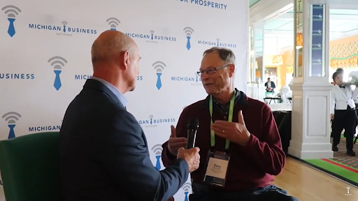 Chris Holman speaks with Gary McDowell, Director, Michigan Department of Agriculture & Rural Development, from Media Row, at the Grand Hotel, while at the 2022 Mackinac Policy Conference.