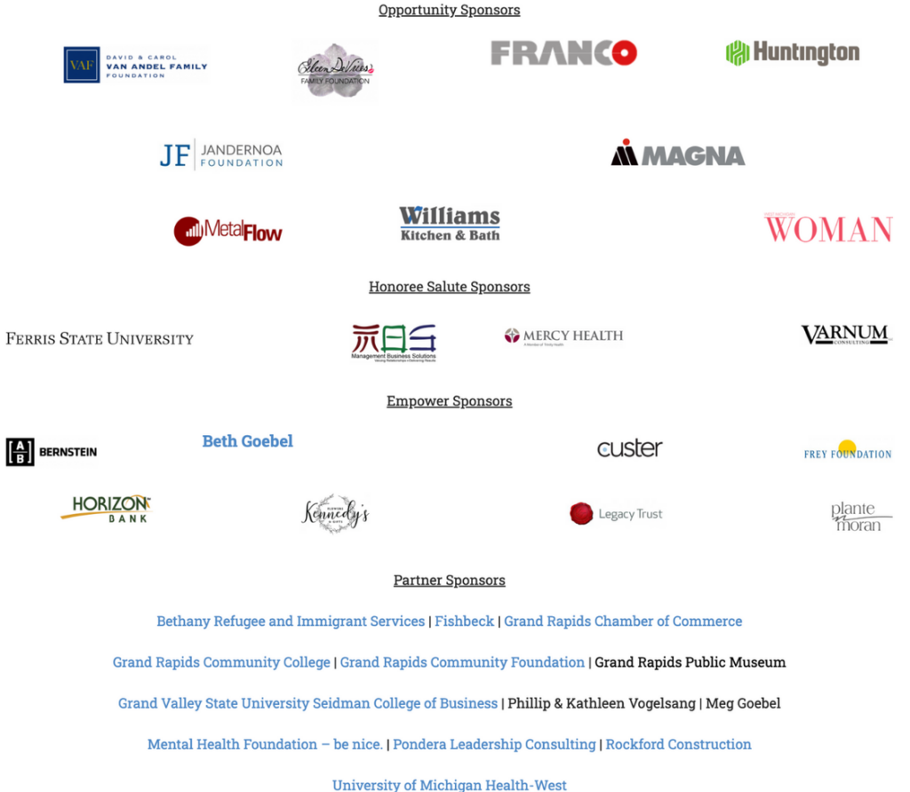 Limited number of tickets available. Includes a seat and lunch at the Grand Rapids WomanUp & Celebrate event at the JW Marriott, as well as access to a virtual meet-and-greet coffee hour with one of the Grand Rapids honorees.
