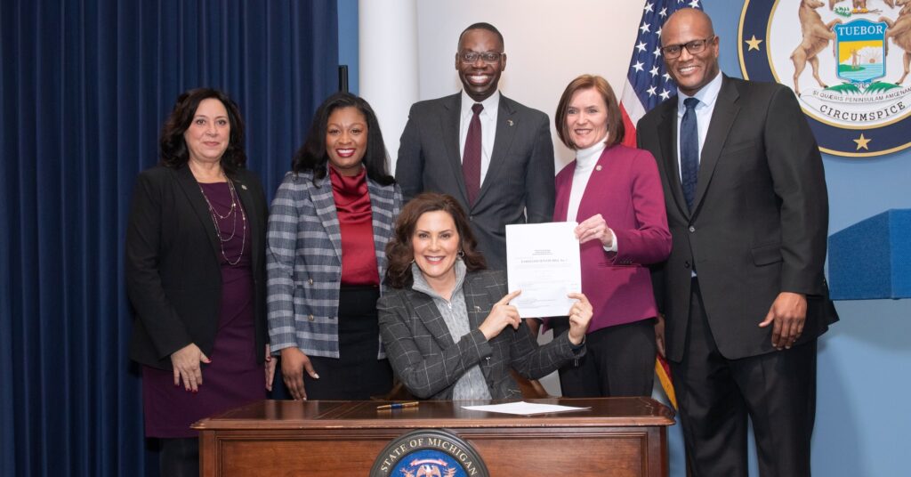 LANSING, Mich – Today, Governor Gretchen Whitmer joined Lieutenant Governor Garlin Gilchrist II, Senate Majority Leader Winnie Brinks, Speaker of the House Joe Tate, and members of the Michigan Legislature to sign a bill into law that will invest in building affordable housing, revitalizing communities, and supporting small businesses and entrepreneurs. This signing marks the earliest a bill has been signed in a new term since 1947.