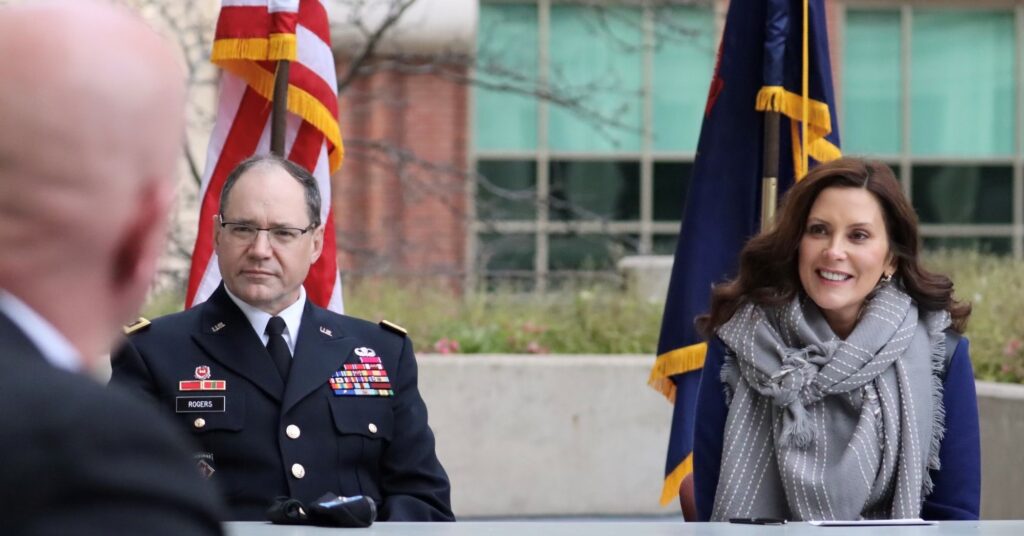 Before the roundtable, Governor Whitmer administered the oath of re-enlistment to Command Sergeant Major (CSM) James Taylor of the 63rd Troop Command in the Michigan Army National Guard. Today is CSM Taylor’s sixth re-enlistment in the armed forces. It represents a decades-long dedication to the American people and his fellow Michiganders.