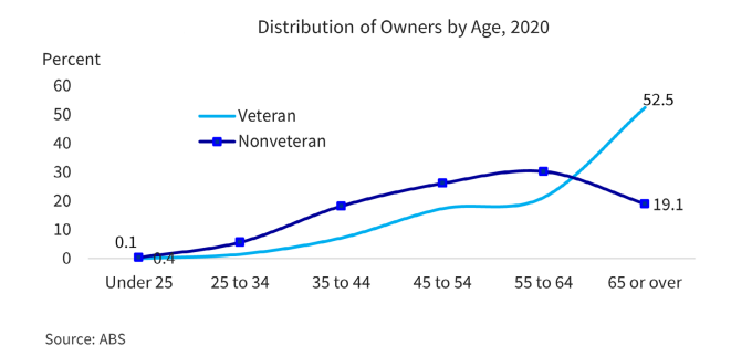“Many veterans choose business ownership. However, veteran business ownership is falling,” reads a report by the SBA Office of Advocacy. “As those owners age out of the workforce, the number of veteran firms is decreasing. Meanwhile, the composition of the veteran population is shifting, and some demographic groups have experienced increases in veteran ownership.”