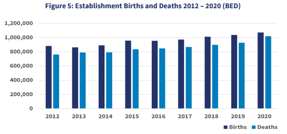 • 1.07 million small businesses opened in 2020, and 1.02 million small businesses closed that year.